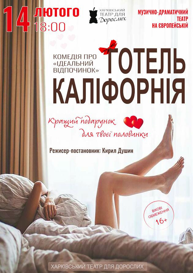 Подаруйте собі та своїм близьким вечір в шикарному номері готелю "Каліфорнія" та зустріч з неперевершеним ХАРКІВСЬКИМ ТЕАТРОМ ДЛЯ ДОРОСЛИХ!